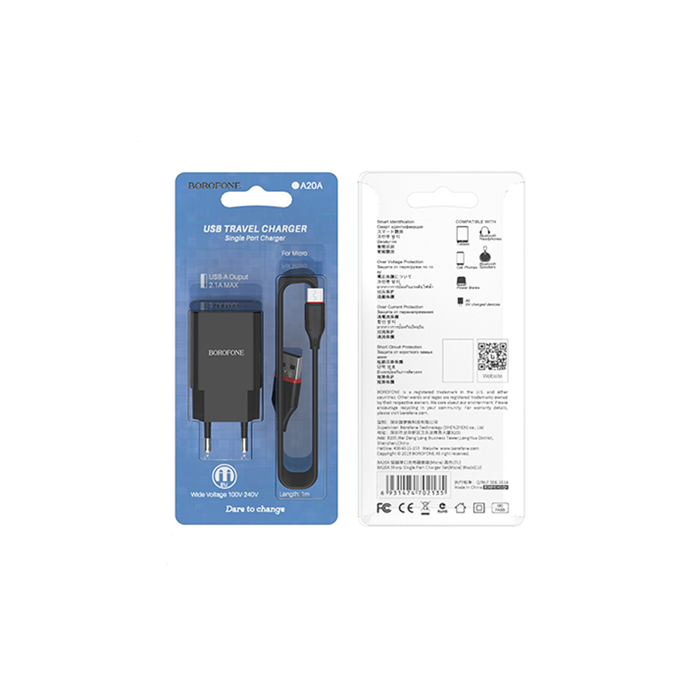 BOROFONE Chargeur - 2.4A 2x USB plug + Micro usb cable